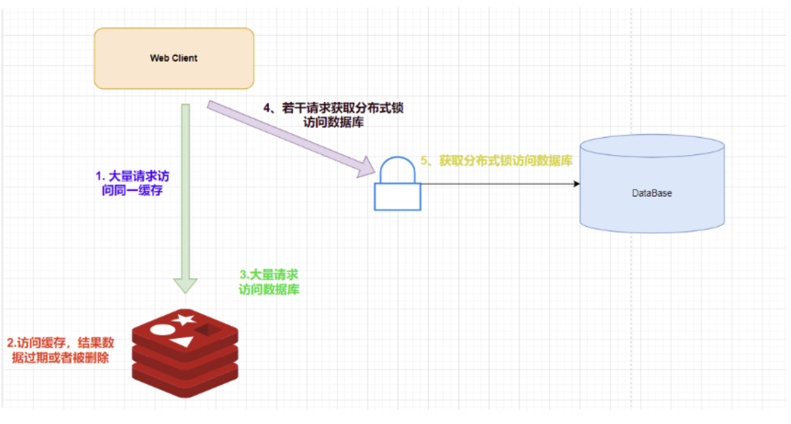 - 获取锁:在查询数据库之前,先尝试获取一个分布式锁,只有一个线程可以成功获取锁,其他线程等待。