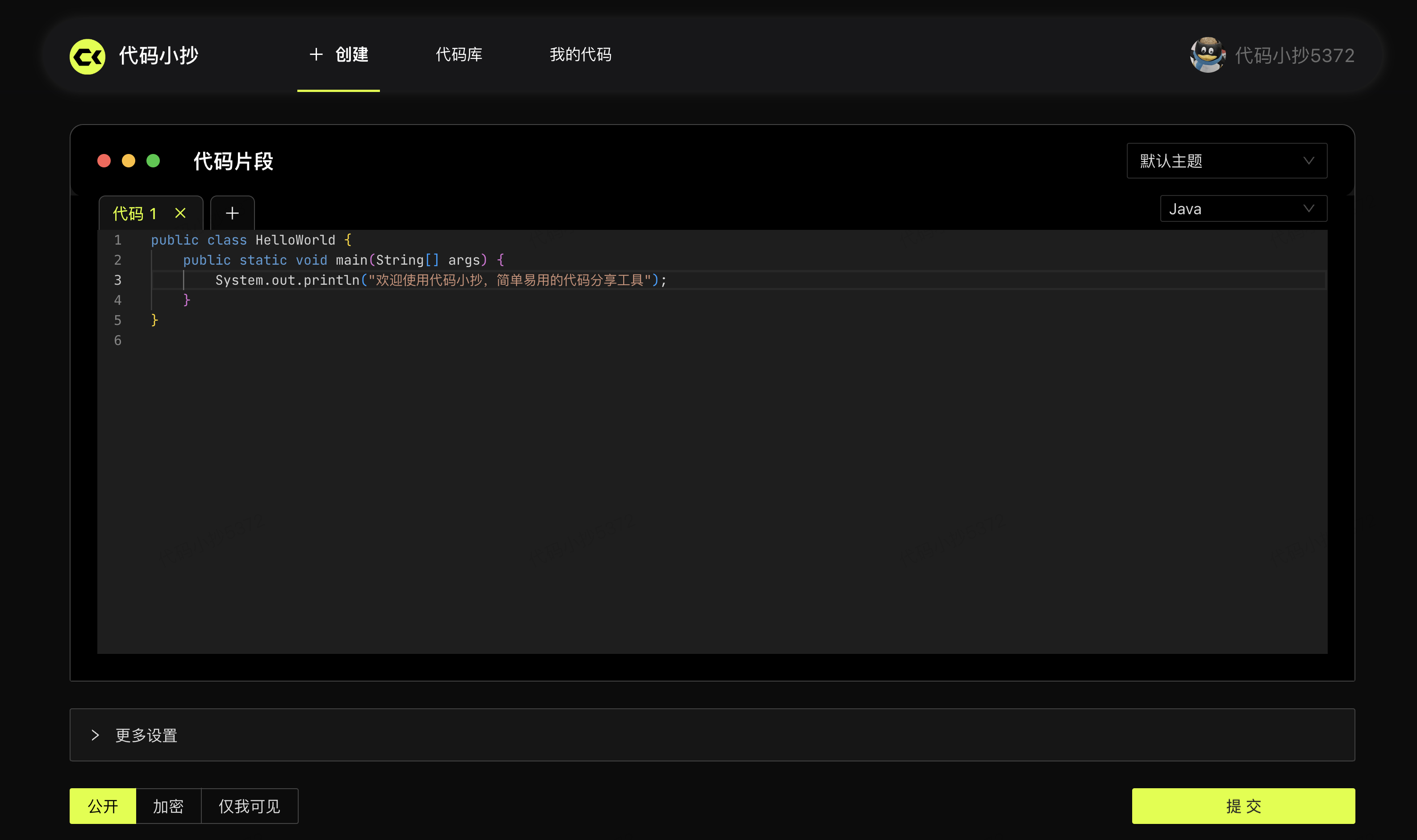 首先,大家可以快速创建和分享自己的多个代码片段。