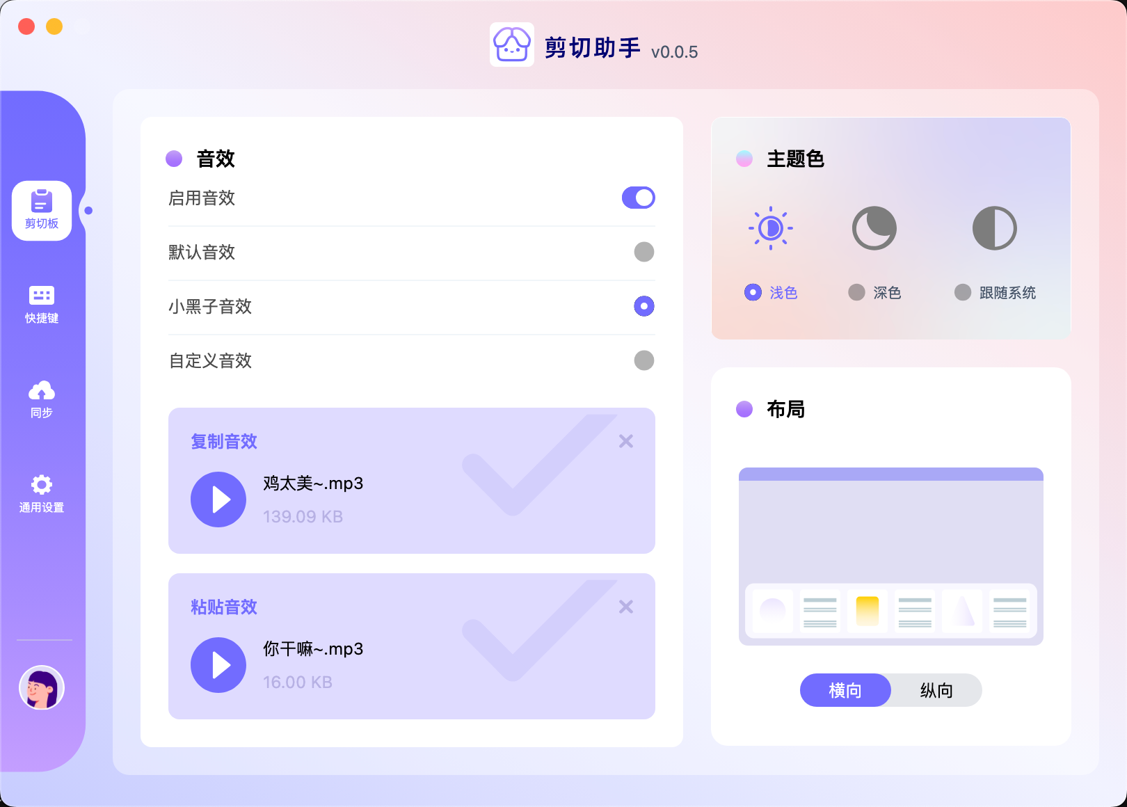 我们精心设计了剪切助手的 UI 界面,可以说是同类软件中的颜值天花板,就是这么自信~