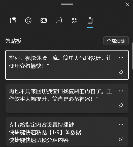 剪切助手支持横向布局和纵向布局,可以自由切换,灵活地展示已复制的内容: