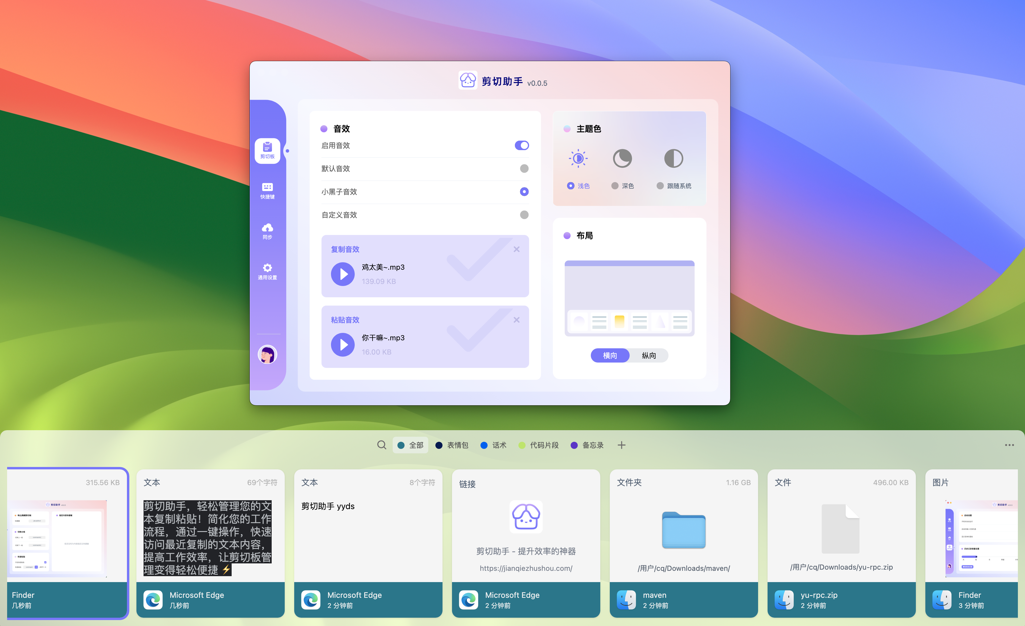 这次,我们做的是一款桌面端软件,号称 “颜值天花板” 的超级剪切板工具 《剪切助手》。
