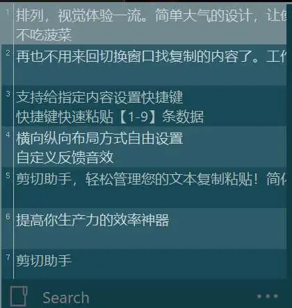 剪切助手非常简单易用,只需要正常地按 Ctrl + C 进行复制,然后按快捷键(默认是 Ctrl + O)就可以唤起已复制内容面板。