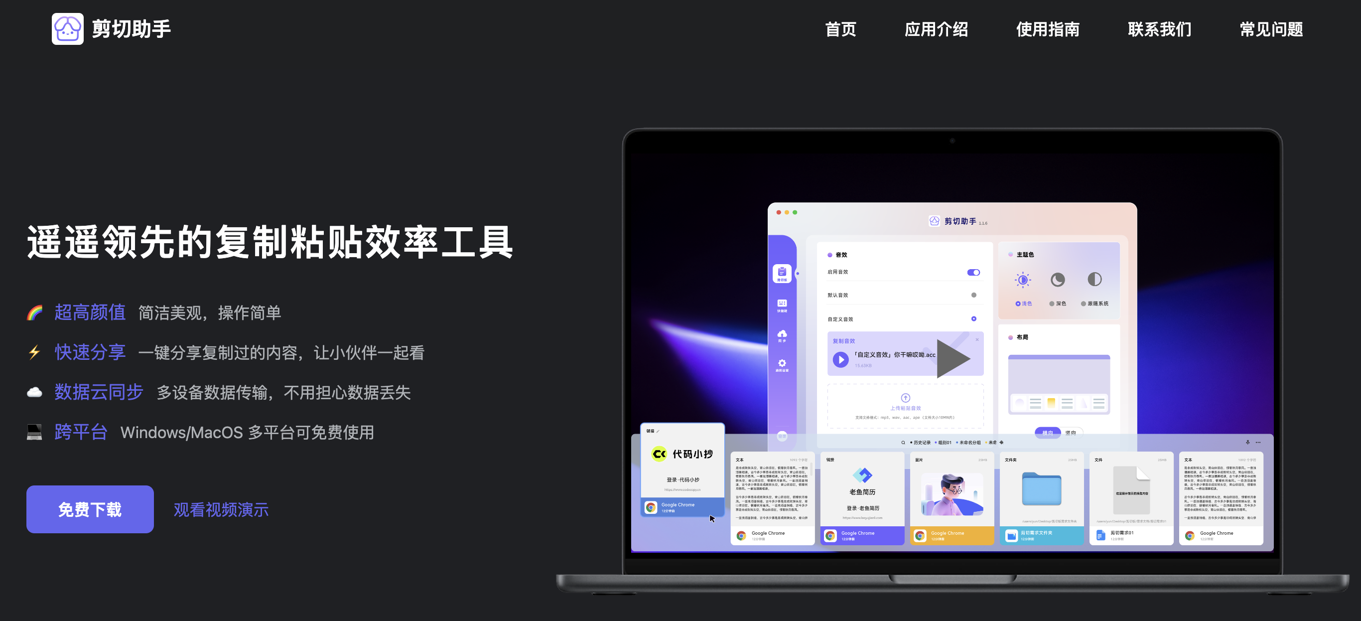 剪切助手是一款界面精美、简单易用、跨设备同步、功能丰富的超级剪切板工具,目标是帮助大家大幅提高工作效率。