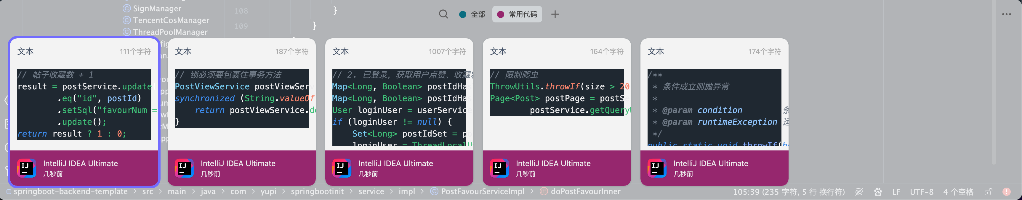 还可以对内容进行分组,便于快速筛选,比如鱼皮将常用的代码片段分到了一组: