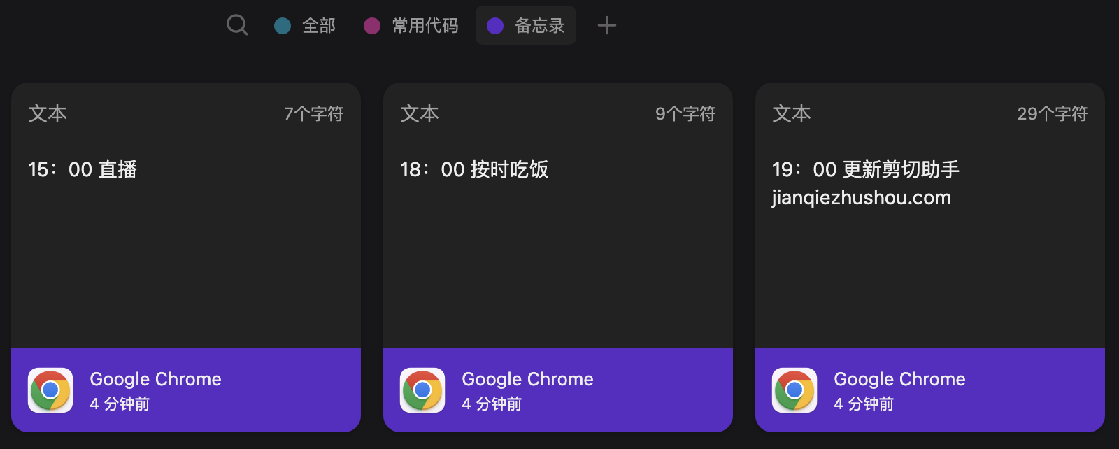 利用分组功能,你完全可以把剪切助手当做一个备忘录来使用,将自己要做的事情拖入指定分组,一目了然: